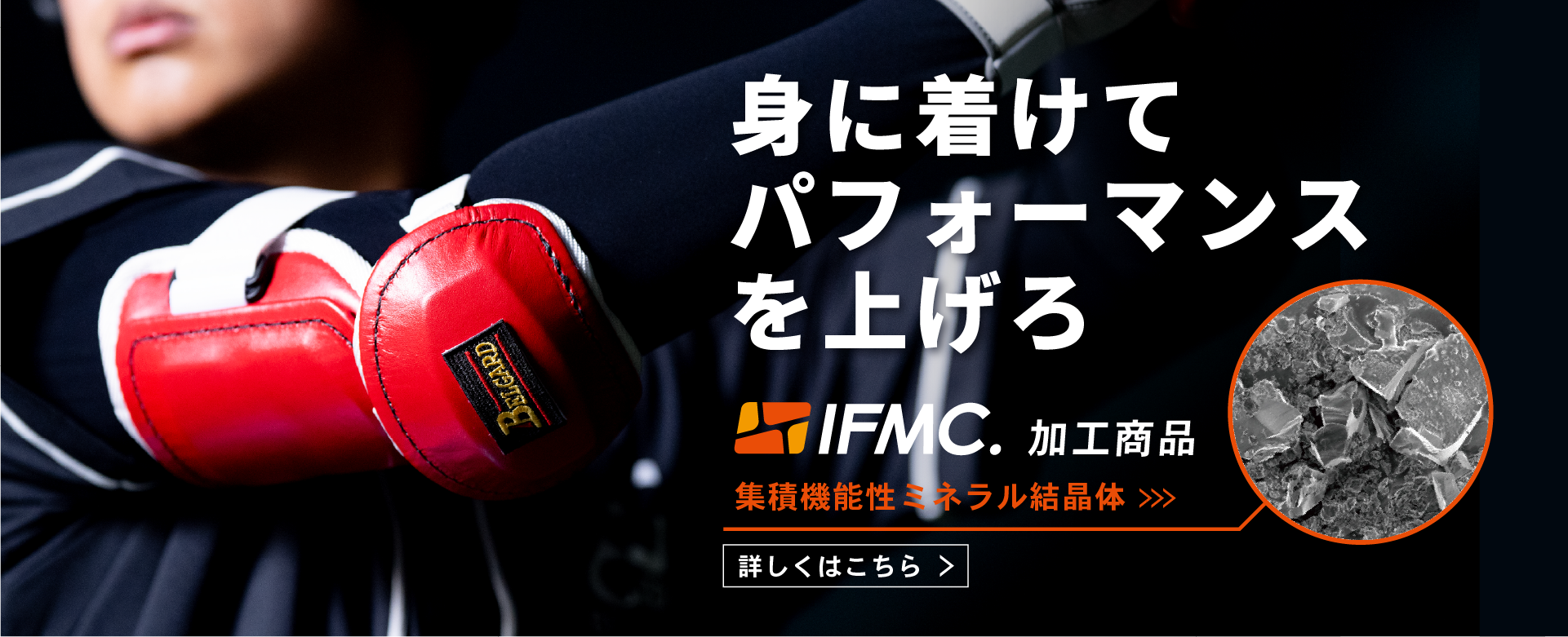 IFMC.(イフミック:集積機能性ミネラル結晶体)は(株)テイコク製薬社が温泉療法に着眼して製造した微小なミネラルの結晶体です。身体に近接させることで血管から一酸化窒素が拡散し、血管が拡張することによる血行促進効果が期待できます。
